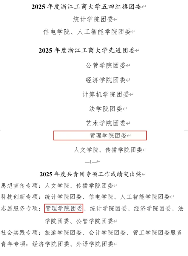 喜报 │ 我院团委荣获2025年度浙江工商大学先进团委及...