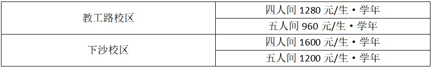 2025年工商管理类专业学费为6095元/生学年,住宿费根据校区、房型不同收费有差异,详情见下图: