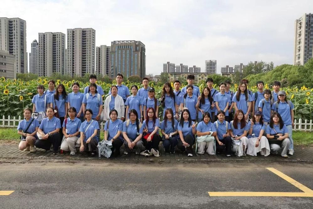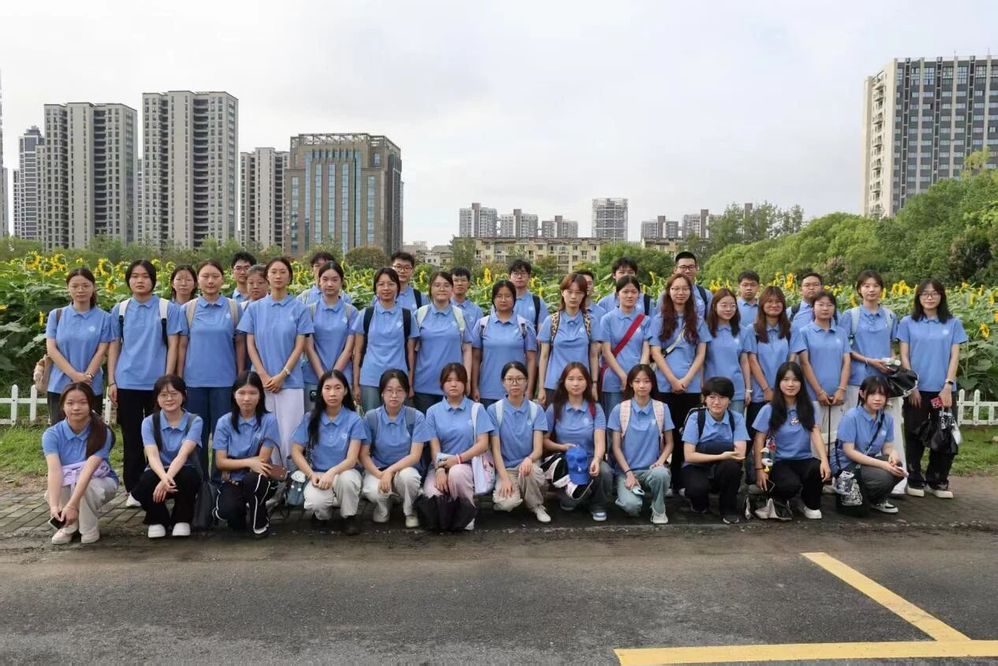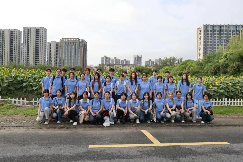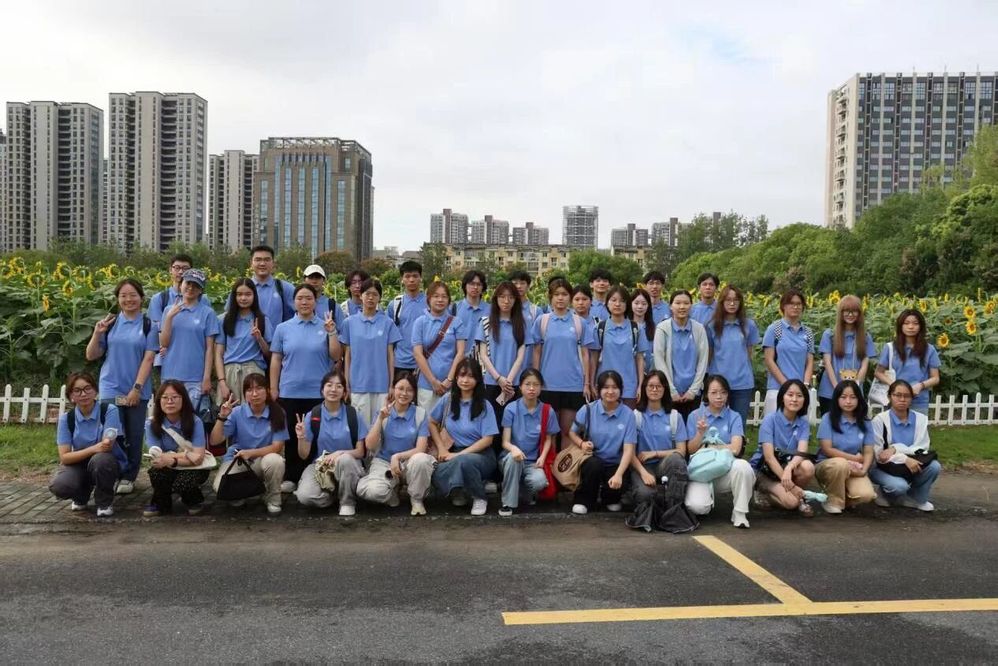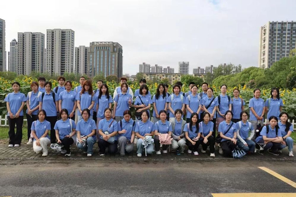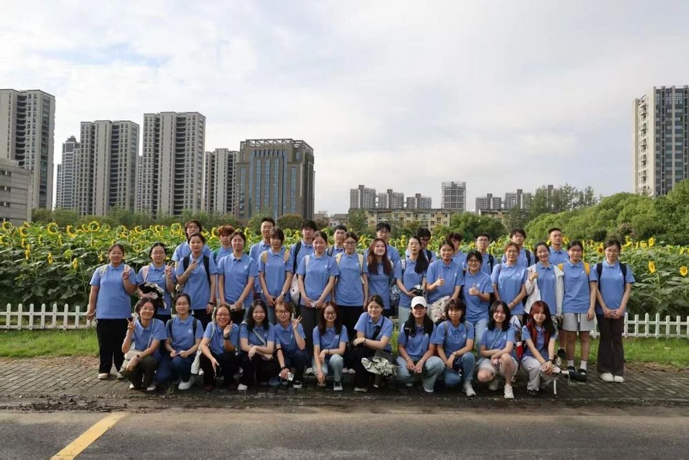 金秋时节,向日葵挺立田间,花盘在阳光下熠熠生辉,相较于开学初的绿意初萌,如今植株更加茁壮,其生长过程,正如初入校园的新生,在学院的沃土与同窗的共勉中历经沉淀、向阳绽放。这份美好的开端,早已定格在开学时花田前的合影中,同学们并肩而立、笑容明朗,为未来的共同成长埋下了种子。