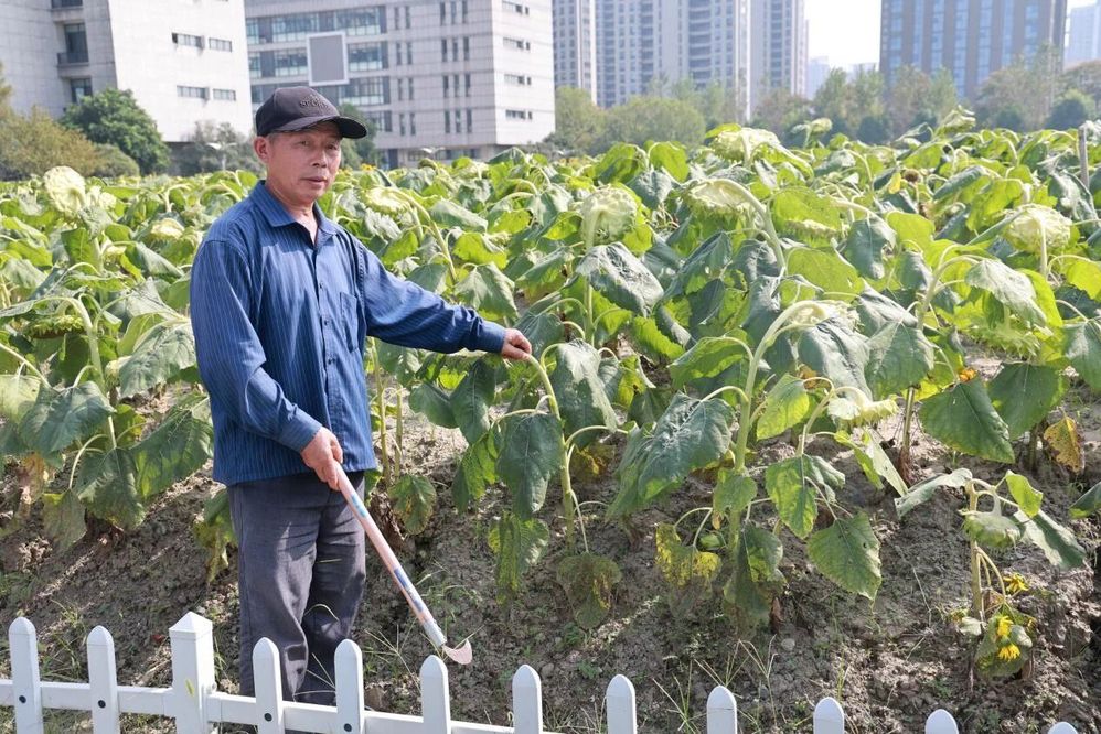 放眼望去,向日葵整齐排列,花盘直径普遍超过20厘米。边缘花瓣虽略显枯萎,中心密集的葵花籽却颗粒饱满,散发出淡淡清香,静候师生采摘。“你们看,从底部斜切断茎,这就是采收花盘的关键要领……”后勤师傅详细演示了采收技巧,大家认真学习,跃跃欲试。