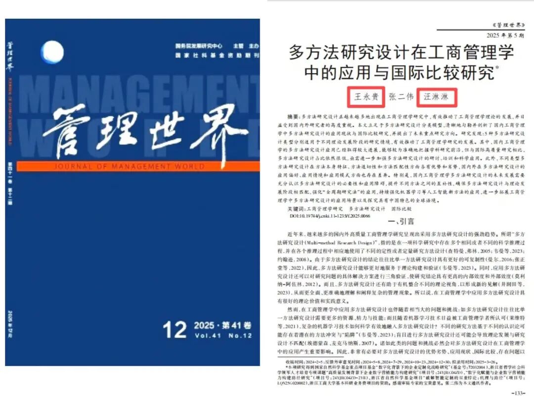 2025年度学院发表高质量论文100余篇,其中顶刊《中国社会科学》1 篇,UTD24 期刊论文 4 篇、《管理世界》论文 4 篇;在ABS4或A++期刊上发表论文23篇。这些成果不仅在国际学术界探讨了机器人服务、数字国际化、技术标准战略等前沿议题,发出了响亮的“中国声音”;同时也在国内聚焦数字化转型、互联网平台、全球价值链等本土管理实践,进行了深度的理论创新与案例解析。