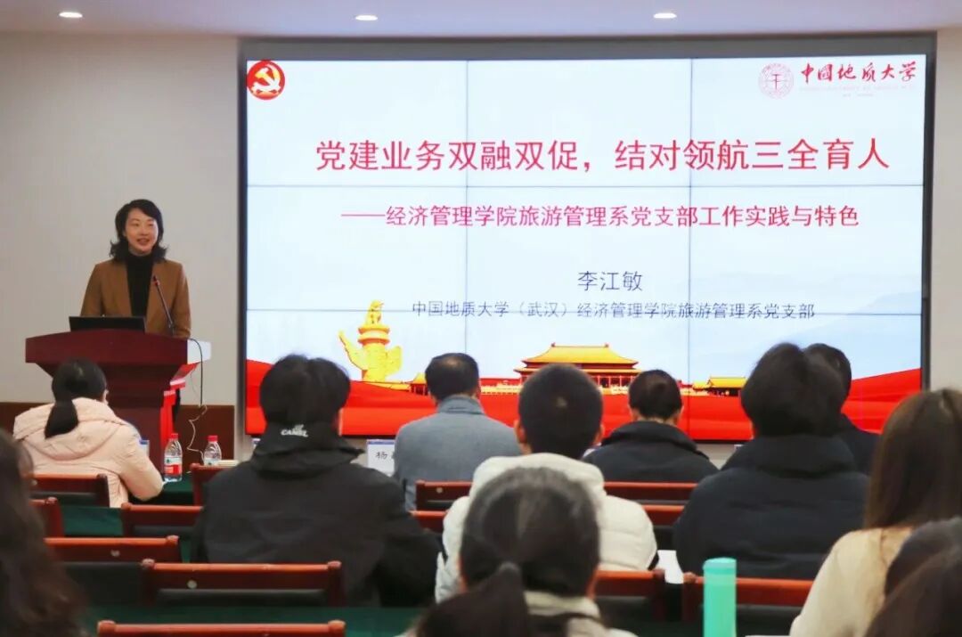 邀请中国地质大学(武汉)经济管理学院党委书记杨昌锐博士、教师党支部书记李江敏教授来学院开展题为“高校党建‘双创’工作的思考与探索”的讲座,学院党建中心团队、党支部书记参加讲座。数字创新与服务型制造研究中心党支部获评校“先进基层党组织”;人力资源本科生党支部获评校“优秀支部服务品牌”;张月月获评“最受师生喜爱的书记”提名奖;杨杰、张雨彤(学生)获评校“优秀共产党员”。
