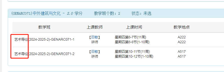 6.通识课程:2022、2023、2024、2025级本科生,本次可以选择2个教学班。