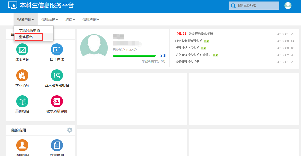 2、重学课程与原不及格课程代码一致的,可直接选课(登陆教务管理系统,进入相应界面即可看到需重学课程,点击“报名申请”→“重学报名”,可直接报名)。