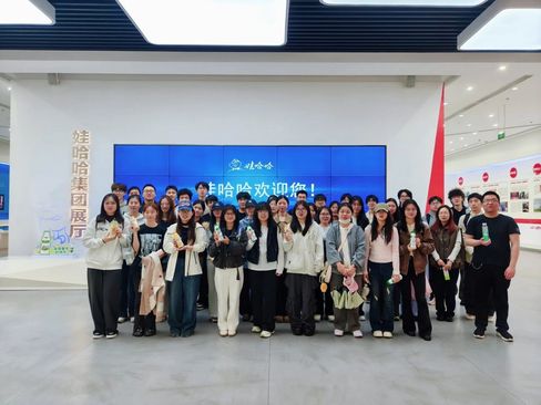 走出展厅,饮品品鉴区让参访多了份趣味与温馨。现场摆放着经典果茶、2024年春晚新品果茶等多款饮品,工作人员贴心准备了免费品尝的饮品,同学们随心挑选口味,在酸甜口感中重温童年记忆,感受国民品牌的品质坚守。拿着饮品,我们在“娃哈哈欢迎您”电子屏前合影,欢声笑语间,真切体会到娃哈哈“健康你我他,欢乐千万家”的初心,也让品牌与我们的距离更近一步。