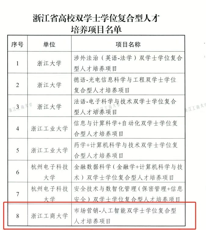 面向这一战略环境,浙江工商大学工商管理学院(MBA学院)主动对接国家和区域重大战略需求,锚定数字管理领域,前瞻布局复合型创新人才培养路径。2023年,学院设立数字管理拔尖人才创新班,探索形成具有鲜明“浙江实践—全国引领”特征的人才培养模式。在此基础上,聚焦数字经济背景下市场营销的智能化转型需求,立足人工智能技术在营销管理中的融合应用,学院于2023年成功获批并于2024年正式实施国内首个“市场营销+人工智能”双学士学位项目,构建“市场营销+人工智能”的跨界复合型人才培养体系,依托学院在市场营销学科和人工智能技术资源上的双重优势,致力于培养面向未来产业场景的创新型市场营销人才。