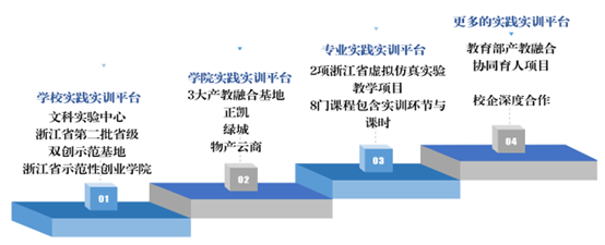 校内核心实验室:依托浙江省普通本科高校“十四五”省级重点建设实验教学示范中心,设数智技术等三大模块,开20余门实践课,实现教学与创造能力培养融合;