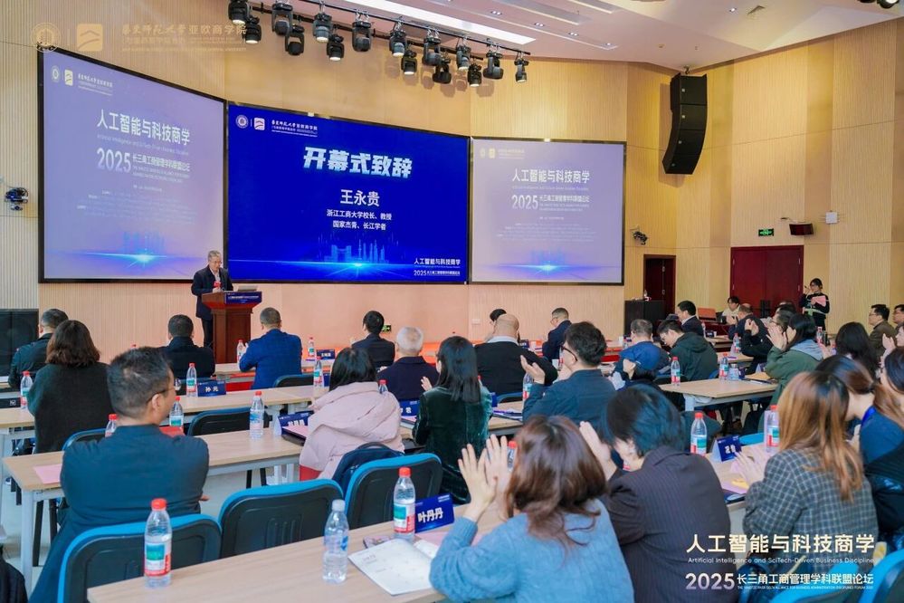 近日,“2025长三角工商管理学科联盟论坛”在上海华东师范大学亚欧商学院举办。本届论坛以“人工智能与科技商学”为主题,汇聚了来自长三角地区及全国近50所高校的院长、系主任、专家学者和企业家代表,共同探讨人工智能时代下工商管理学科的转型路径与人才培养新范式。