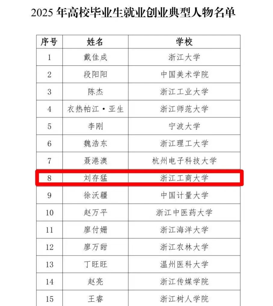 此前他被评选为浙江省2025年高校毕业生就业创业典型人物,以实干为青春注解。他扎根一线,将所学化为所用,在平凡的岗位上创造不凡价值。每一步奋斗,都是对梦想的忠诚;每一分坚持,都在为时代答卷增添光亮。他以行动证明:真正的优秀,是把热爱做成事业,将担当写进行动。