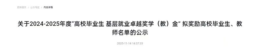 近日,我院优秀毕业生刘存猛荣获2024-2025年度全国高校毕业生基层就业卓越奖学金。