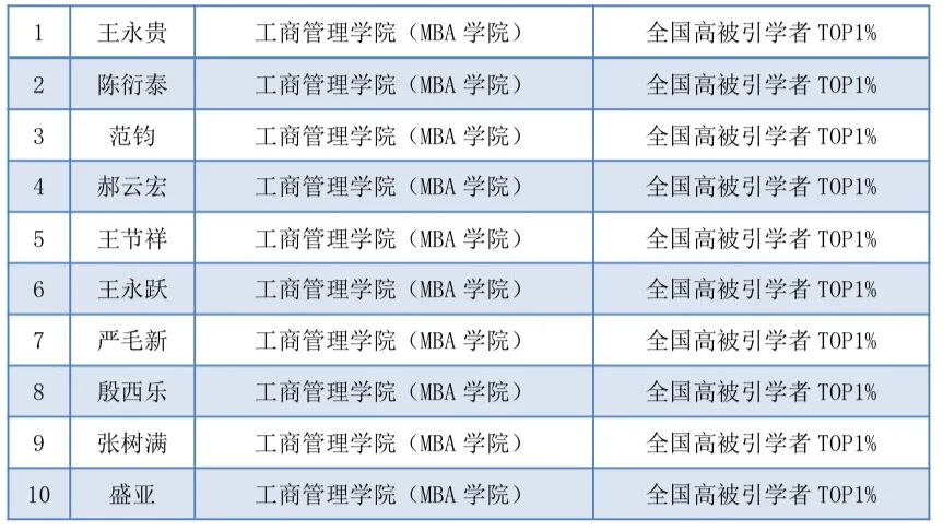王永贵教授、孙元教授、马龙副教授入选2025全球前2%顶尖科学家“年度影响力”榜单。王永贵教授、陈衍泰教授等10位教师入选Top1%中国知网高被引学者榜单。