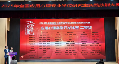 在2025年全国应用心理专业学位研究生实践技能大赛中,我院2025级应用心理专硕学子表现卓越,于案例开发、方案产品设计、科普视频创作三大赛道屡获佳绩,经学院推荐的7个团队,成功摘得全国二等奖等荣誉,展现了出色的实践创新能力。