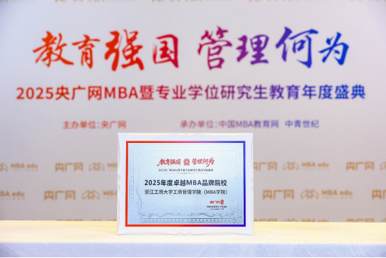 围绕“把商学院建在产业里”的办学理念,学院持续推进 MBA 与 MPM 教育的数智化转型与生态化建设,品牌建设取得突破性进展。2025 年,学院先后荣获“年度卓越 MBA 品牌院校”、“AI+商科教育融合创新标杆”、“数智化商科教育最佳生态建设示范学院”、“商科新媒体先锋单位”等多项权威荣誉,标志着浙商大 MBA 在数智赋能、产教融合和品牌传播等方面的探索实践获得业界与社会的高度认可。